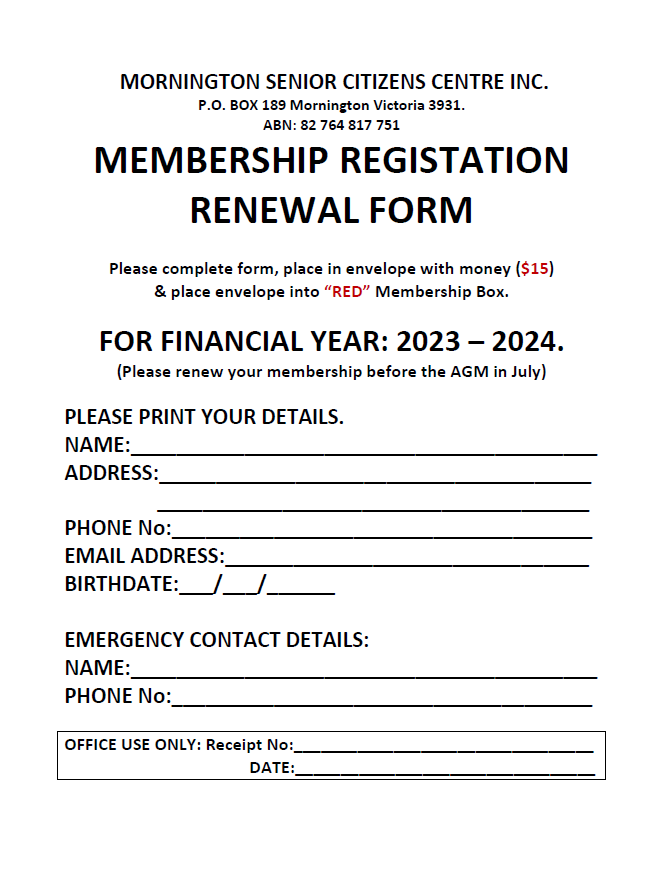 Membership for Mornington Senior Citizens Club is very affordable.